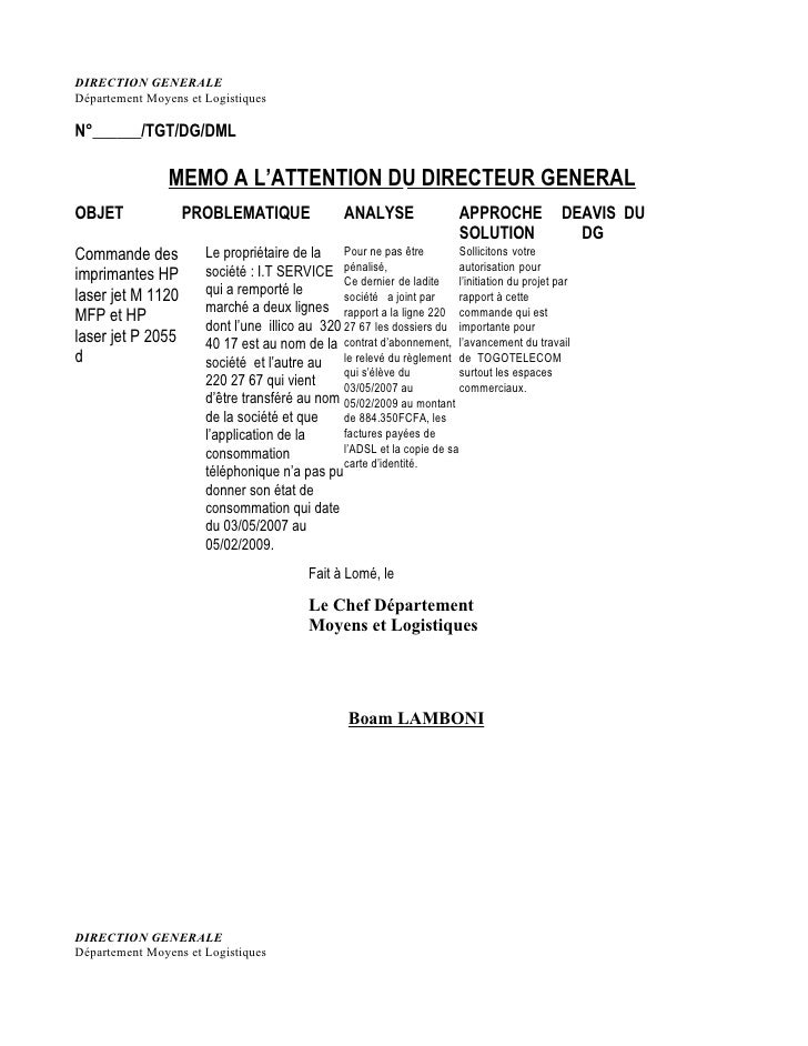 Exemple De Mémorandum D Information